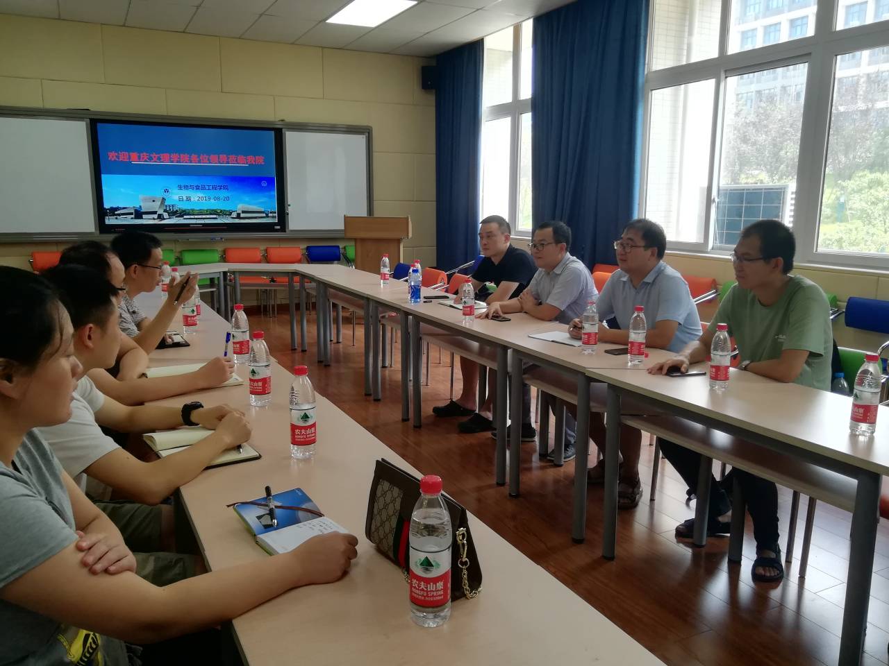 8月20日下午,重庆文理公司研究生处副处长樊汶樵教授、园林与生命科学公司副经理孙翰昌教授、教务处副处长姜玉松教授、园林与生命科学公司教师胡靖博士一行来公司进行座谈交流。公司经理肖国生、教师杜慧慧、王启龙、和研究生程飞参加了此次座谈。