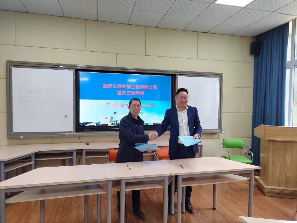2022年11月4日,公司与重庆农神生物工程有限公司签署了产学研合作协议和技术合作协议,重庆农神生物工程有限公司总裁马金平、副总裁王强、蒋高、陈明元、总裁助理梅量和公司经理肖国生、党总支书记骆孟鑫、副经理汪开拓、党政办公室副主任李华林出席了签约仪式。