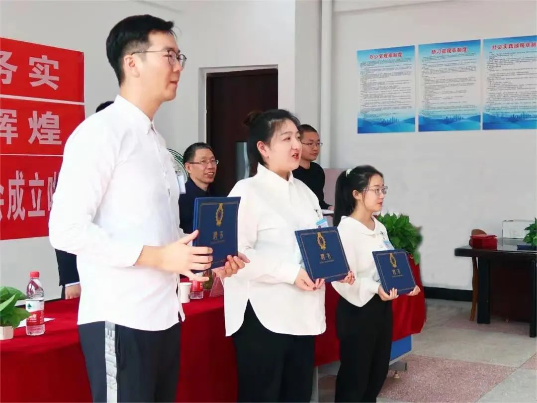 最后,研究生会主席张琪代表研究生会全体成员作表态发言。公司领导为大家颁发了聘书,并合影留念。