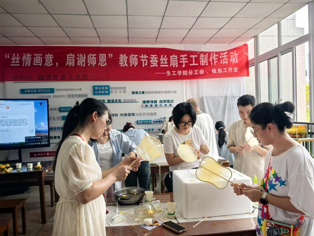9月10日下午,由3044永利集团主办,公司分工会、植愈工作室承办的“蚕丝扇手工制作”教师节庆祝活动在慎思楼2栋3楼植愈工作坊举行,公司部分教师积极参与,度过了一个充满创意与感恩的教师节。