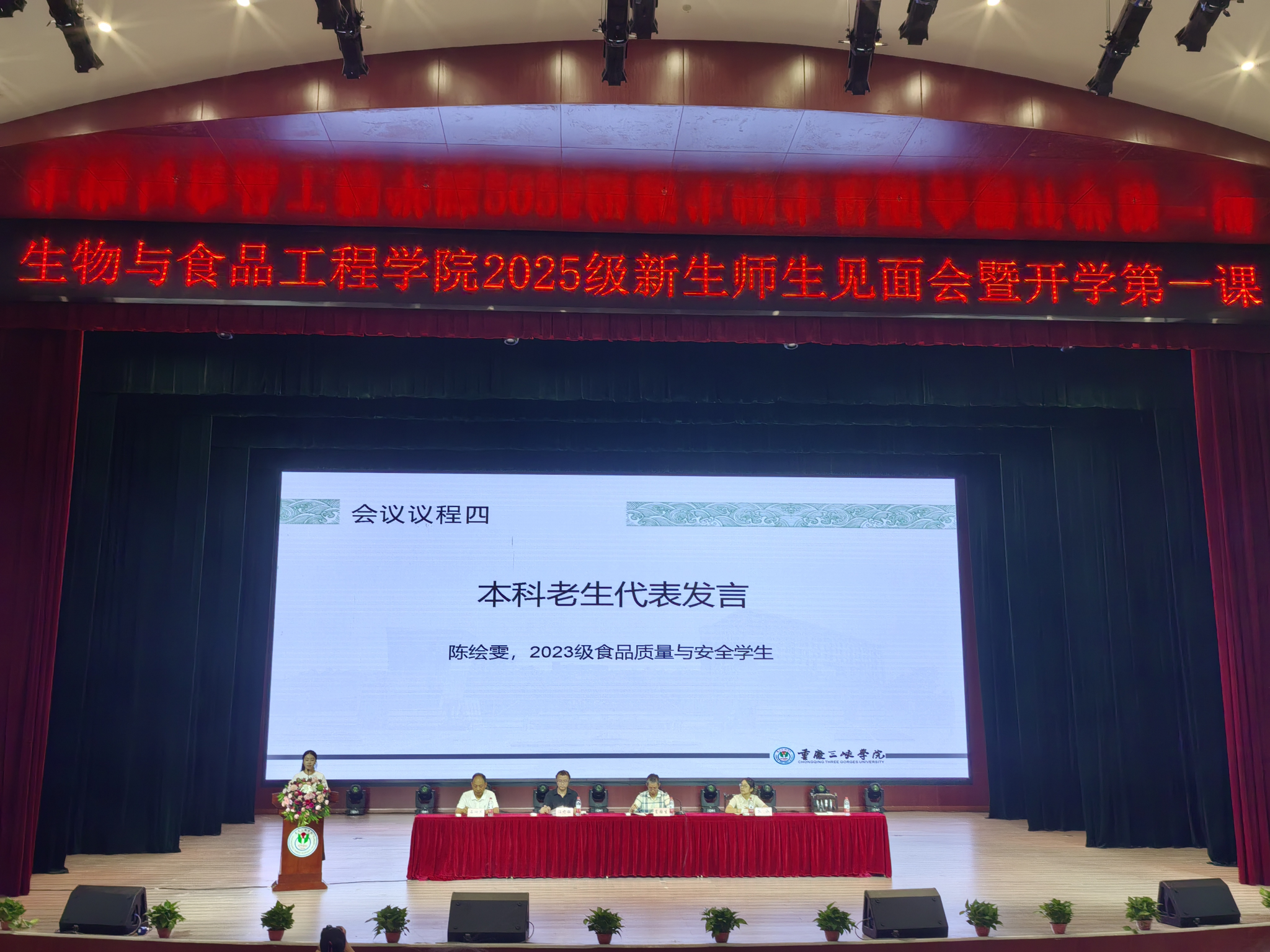 会上,师生及员工代表依次发言。2023级食品质量与安全专业陈绘雯、2024级学科教员工物专业徐国奥分别作为本科和研究生老生代表,分享了学习经验与成长感悟;2025级智慧农业专业易卓、资源利用与植物保护专业张翌浠作为新生代表,表达了对老员工活的憧憬与决心。优秀员工、沛睿(重庆)生物科技有限公司总经理熊健结合自身创业历程,鼓励新生脚踏实地、勇于创新,在专业领域深耕细作。教师代表杨露晴博士寄语新生珍惜时光,以严谨治学的态度追求卓越。