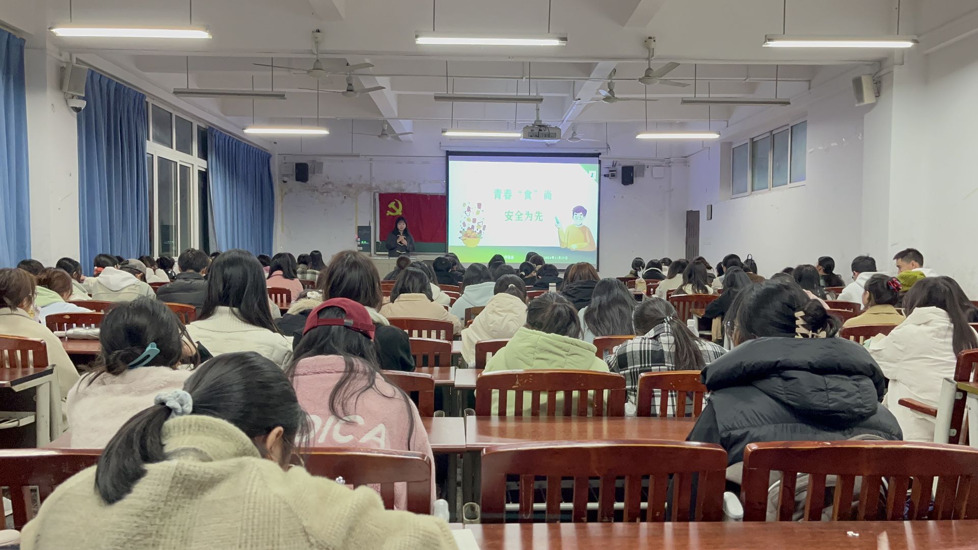 为了提高同学们的食品安全意识,预防疾病,提升生活质量,11月23日晚上19:30,公司初心工作站于明辨1栋301教室开展以“青春食尚,食品为先”为主题的活动,共计112人参加。