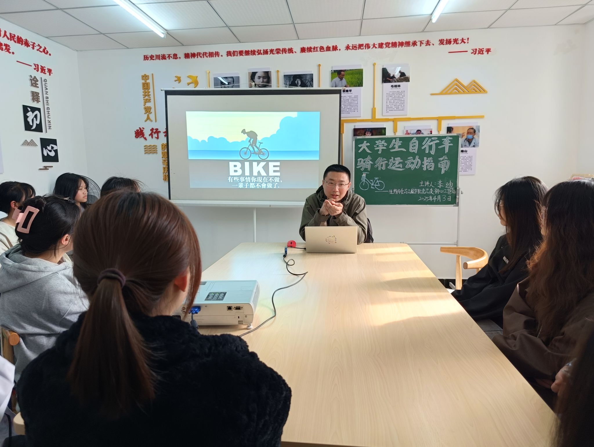 为丰富老员工的课余生活,以及增强同学们挑战自我的勇气,4月3日15:00,公司初心工作站于蓝雾苑2舍4楼活动室开展第48期“寝室工作日”活动,李迪老师围绕骑行运动向同学们展开分享,共计19人参加。