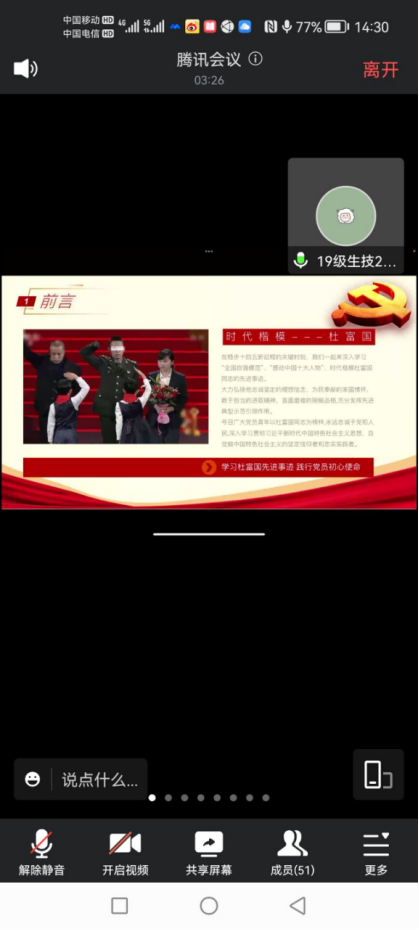 主题党日由张毓桂、李旻澳两位同志领学,学习的内容分别是新时代的伟大成就和时代楷模杜富国同志。通过学习使同学们明白,在国家的新发展阶段要把握好整体目标和个人目标的关系,用实际行动传承红色基因,为时代的进步贡献微薄力量。在帮扶活动过程中,同学们就学习、生活等方面的困难进行交流,党员同志也结合自身经验进行一一解答,使同学们受益匪浅。