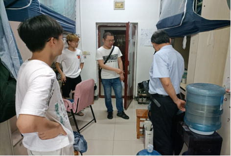 为进一步贯彻落实全市教育系统近期安全稳定和疫情防控工作视频会议精神,做好员工安全稳定工作,7月1日下午,公司党总支副书记陈文剑、学工办副主任李华林带领全体学工人员深入走访员工宿舍,关心关爱员工,排查宿舍安全隐患。