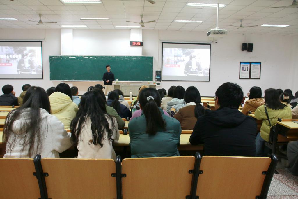 会上,辅导员通报了一起校园起火案例,结合案例总结了警示意义,从火灾的特性、火灾的预防、火灾的应急处理、常用消防器材介绍、灭火器使用实操等方面开展了消防安全专题教育。辅导员还开展了诚信考试教育、反诈宣传教育、安全教育。