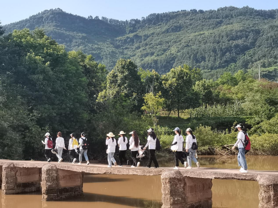 在重庆万俱农业开发有限公司总经理叶宗平及石桥村付支书的安排下,公司“星火乡筑 薪火相传”乡村振兴促进团从丝绸文化馆开始考察,了解桑蚕与丝绸的关系及其制作过程,领略前人建筑设计的智慧,初步掌握石桥村建筑布局及文化特色;根据石桥水乡湿地公园“重走长征路”这一规划重点,结合当地桑葚、梨等农业种植情况进行考察调研,在专业教师万路生、杜慧慧的指导下,发挥风景园林、园艺、农学、食品科学等专业优势,凝练当地产业发展特色,初步确定规划设计方向。