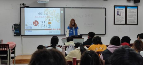 首先,由各班学委为班级同学讲解班会的主要目的,让员工明确“诚信”的含义,了解“诚信”的地位,重视“诚信”的作用,重视学习诚信考试,做自律自信的文明规范好员工。其次,班委总结列举了一些应考技巧,例如心理技巧、答题技巧、思维技巧、复查技巧等。最后,由班长做班会总结并带领同学们进行诚信宣誓,树诚信学风,为诚信学子。