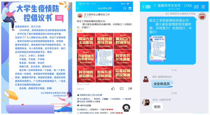 2020年02月05日,生工公司员工公寓党员工作站通过官方QQ线上发布“老员工疫情防控倡议书”并开展线上“手动加油接力”活动。旨在呼吁大家积极响应国家号召,共同抵御疫情的同时,致敬奋战在一线的工作者们,为“抗疫行动”加油。