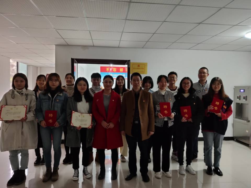 开始,肖国生经理对公司员工公寓建设提出以下五点建议:一是站务委员充分发挥积极性,起到模范带头作用;二是充分发挥工作站的阵地功能,确保各项工作顺利完成;三是注意工作站目标意义,合理开展工作;四是规范言行举止,明确目标计划;五是将工作站做出特色。随后,员工党支部书记向丽霞就工作站应如何加强政治思想引领、阵地文化建设提出要求,号召同学们积极开展“每日一刻”、“讲国学,读经典”、困难群体帮扶、志愿服务等相关活动。员工支部组织委员蒋园园就工作站的管理提出具体要求。最后,肖经理和向书记为公司员工公寓党员工作站各分站和站务工作人员颁发聘书,并合影留念。