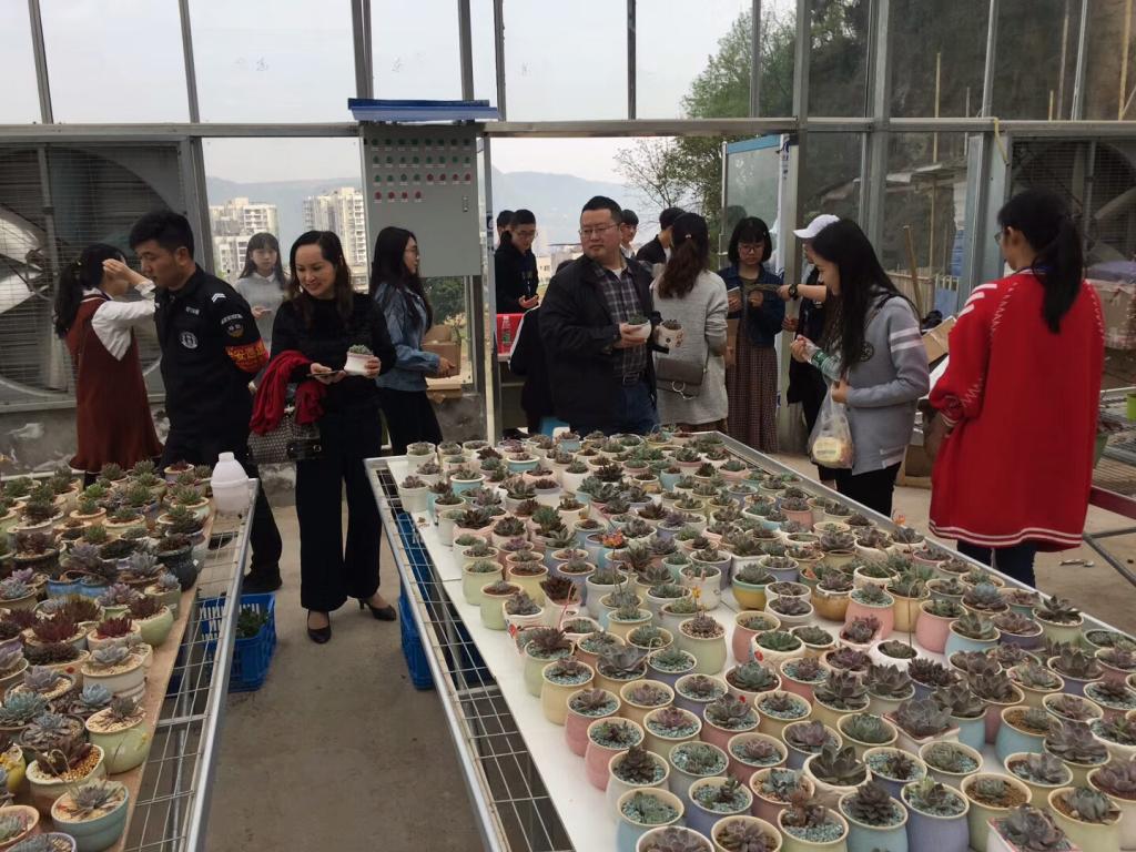此次活动还有一大特色——公益行。首先,在我们活动发布网上集赞66个就可以到现场免费领取多肉盆栽1盆;其次,拿到活动“公益券”的参加者到现场捐款1元也可领走多肉盆栽1盆;活动中的免费体验区更是热闹非凡,很多师生都在公司园艺专业员工的指导下亲自栽种多肉,由自己培植的成品多肉盆栽只需要捐赠1元钱即可带走,既美化了身心,又为公司扶贫工作出了力。活动所收到的公益款会全部捐给公司对口扶贫的巫溪县天元乡。