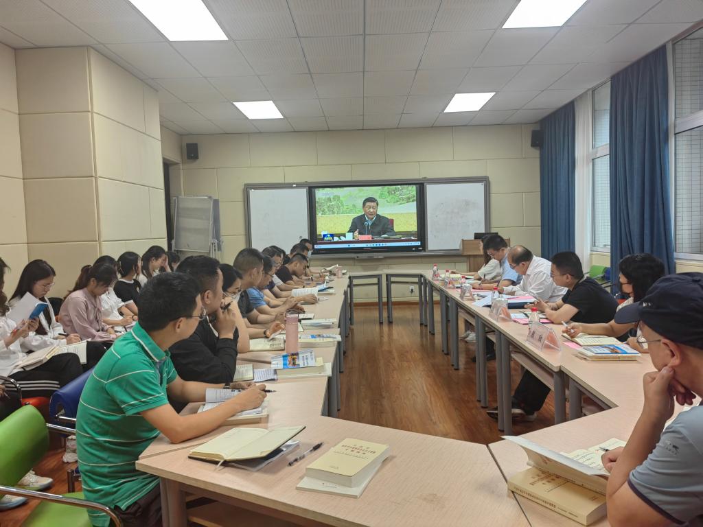 在学习会上,与会人员集中观看了习近平总书记在中共中央政治局第五次集体学习时的重要讲话视频《加快建设教育强国,为中华民族伟大复兴提供有力支撑》。工程中心党支部书记赵峰同志领学了《习近平关于“三农”工作的重要论述学习读本》第一章 “三农”工作的历史方位和战略定位选段、第四章 强化农业科技和装备支撑选段、第十五章 强化农业振兴保障要素选段以及《习近平新时代中国特色社会主义思想专题摘编》第五章 推动高质量发展第5节选段,顾欣、尹福强、张琪和赵佩兰四位同志分别从农学人才培养、助力农业现代化建设、学农知农爱农强农兴农和全面推进乡村振兴等方面作交流发言。支部党员还进行了理论学习知识抢答,并围绕万州烤鱼产业发展面临的技术问题开展研讨。