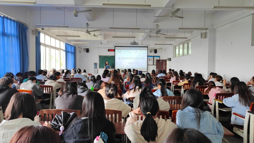 为宣传基层就业的重要性和优势,引导同学们树立正确的就业观念。公司于4月21日下午16:00在明辨楼1栋421室、慎思楼4栋416室分别开展“基层就业内容及政策宣讲”主题活动,公司辅导员许美琳、龙颖主持开展,公司大三员工、大四毕业生参加,共计475人。
