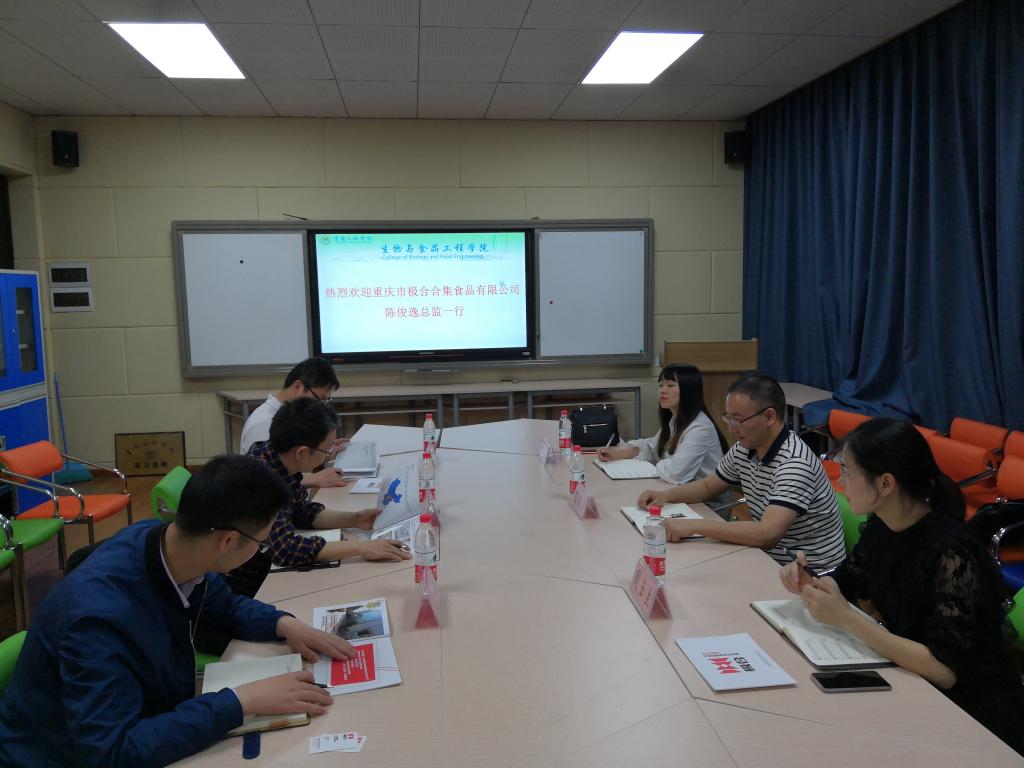 4月18日下午,公司在慎思楼2栋216召开了与重庆极合合集食品有限公司合作交流会。参与本次交流会的有重庆极合合集食品有限公司陈俊逸总监、经理周玉兰、喻琴及公司肖国生经理、周浓副经理、曲留柱老师。本次交流会旨在与企业合作培养人才,增强公司员工本领。