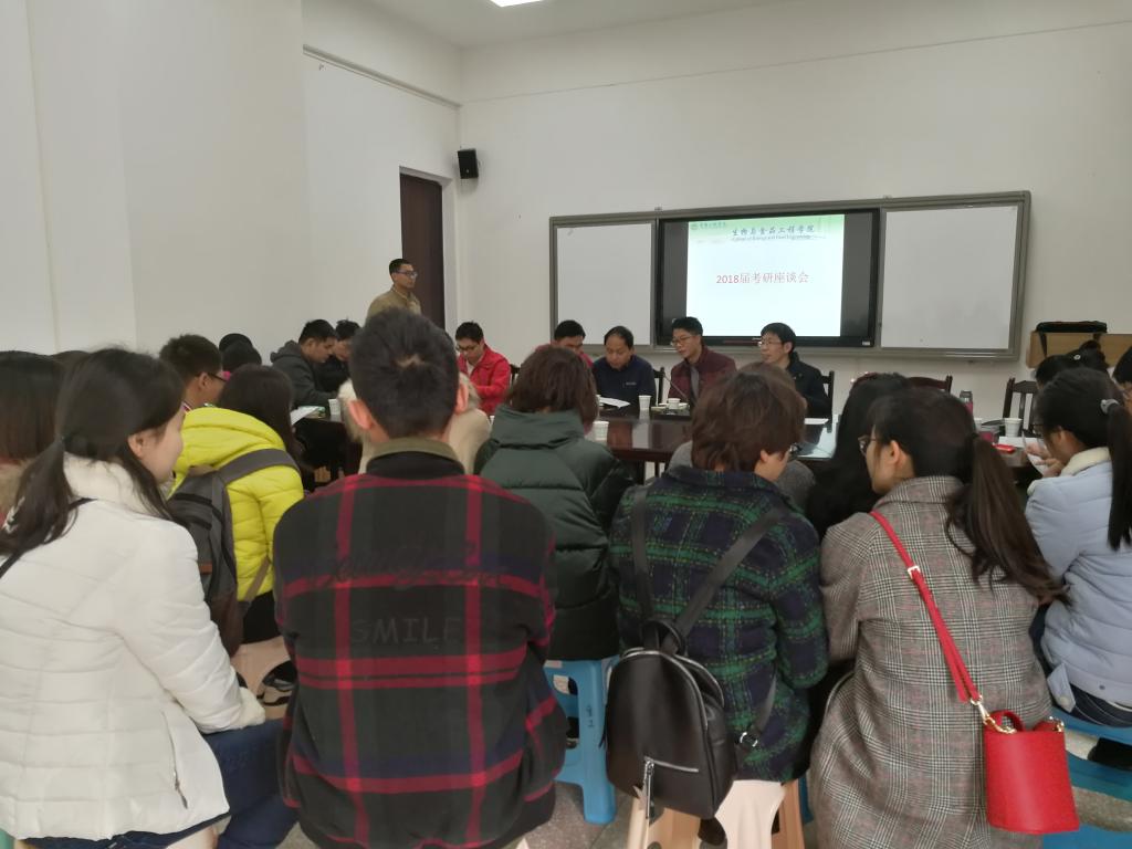 为进一步加强同学们对研究生复试信息的了解,让其明确方向,增强求学斗志。3月7日12:30,公司在会议室B1-216召开了考研复试分析座谈会,参加此次会议的有公司领导、辅导员和全院博士及参加考研的同学们。
